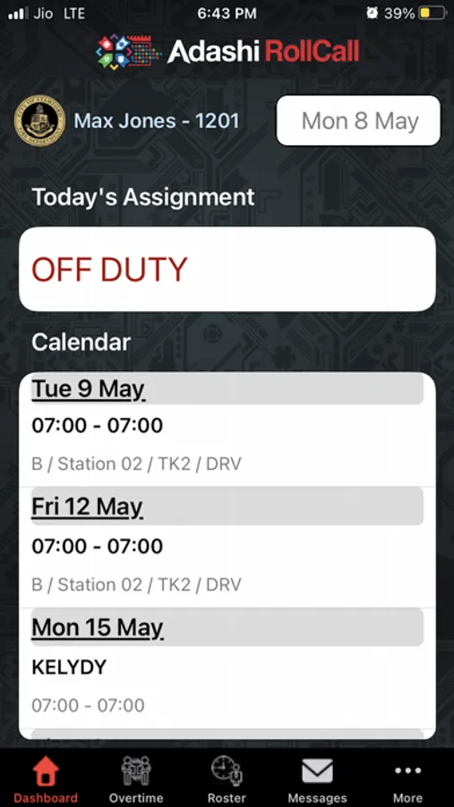 The redesigned Adashi Rollcall companion mobile app extends key duty schedule information and management capability to your iOS device. Personnel have access to a tailored dashboard depicting assignment details for today and into the future, and can delve further into their duty schedule via the Roster and Calendar modules. Rollcall facilitates requesting shift trades and time off, communication between personnel, and introduces an all-new overtime opportunity response module to centralize these chances to pick up additional work.