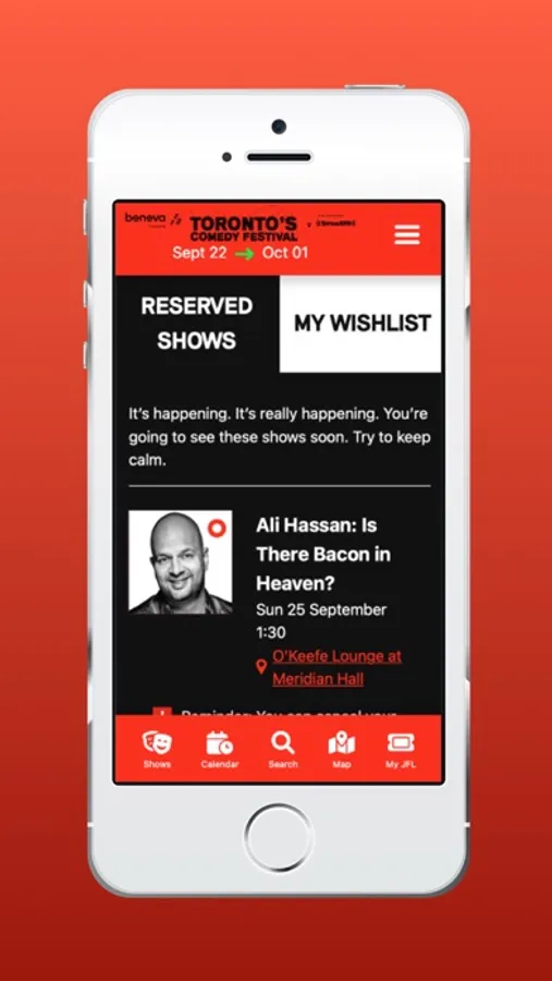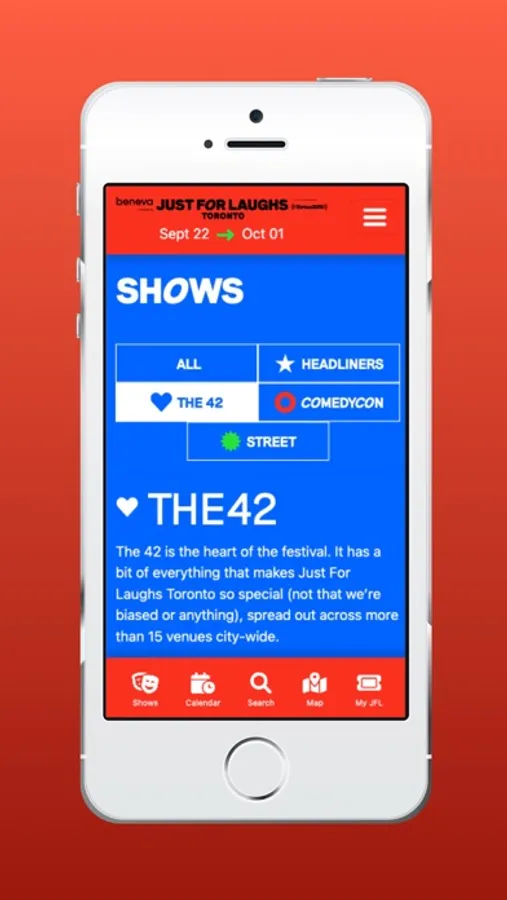 This is the official mobile app for getting the most out of attending the Just For Laugh Toronto Comedy Festival. Browse our lineup and see all that the pass has to offer. Buy a pass (hands down the best way to experience the Fest!), create your personal schedule, then login to reserve to show and pull up your barcode to get into shows. Choose your festival experience and discover our Headliners, the 42 acts events.