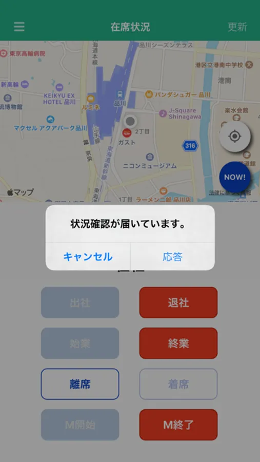 通知を受信して状況確認に応えることで、勤務状況を簡単に報告することが可能です。