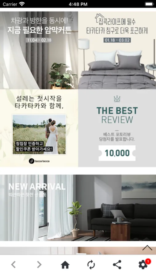 taccatacca APP 특별한 감성 공간을 만들고자 하는 홈인테리어 패브릭 브랜드 '타카타카' 다양한 이벤트를 푸쉬 알림으로 받아보세요!