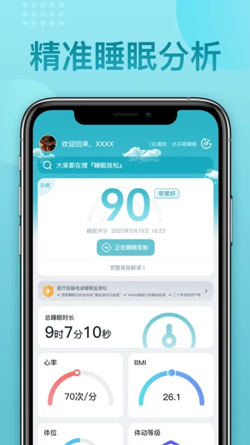 - 日周月报告分析:一个月有8天睡眠评分不合格,是长期加班熬夜还是总在周末的深夜刷朋友圈,月报追踪可以帮助您更清楚的了解自己的长期睡眠规律。