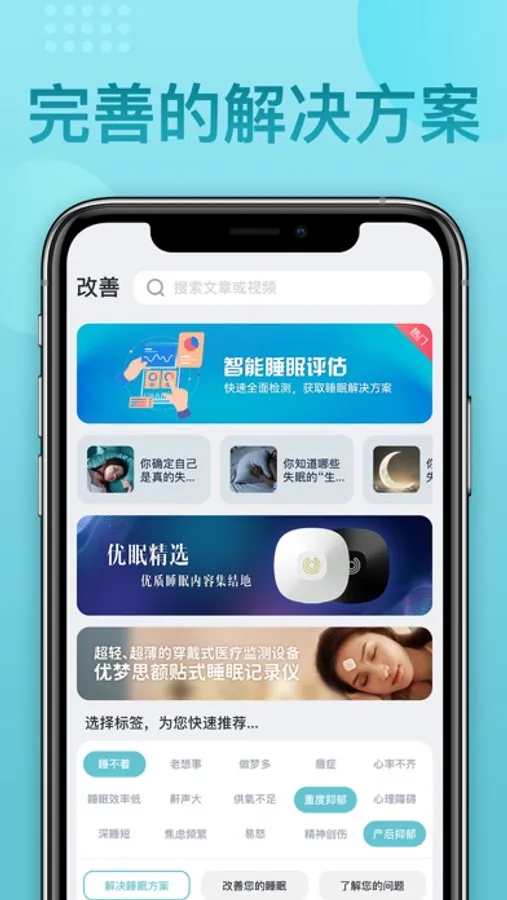 优梦思是您贴身的睡眠管家,我们渴望能陪伴和帮助您度过每个美好的夜晚。如果您有睡眠困扰,或者期望改善自己的睡眠质量和养成良好的睡眠习惯,不妨试试优梦思。该应用配合我司研发的额贴式脑电睡眠设备,可以轻松的为你呈现睡眠分期、心率、血氧、鼾声、体位、体温等多维度综合睡眠报告。让您对自己的健康有更全方位的了解。优梦思在提供科学的睡眠监测的同时还精心挑选了丰富的高品质助眠音乐,让您的大脑在夜晚随着优美的音乐频率达到舒适和放松的状态,从而拥有更优质的睡眠体验。