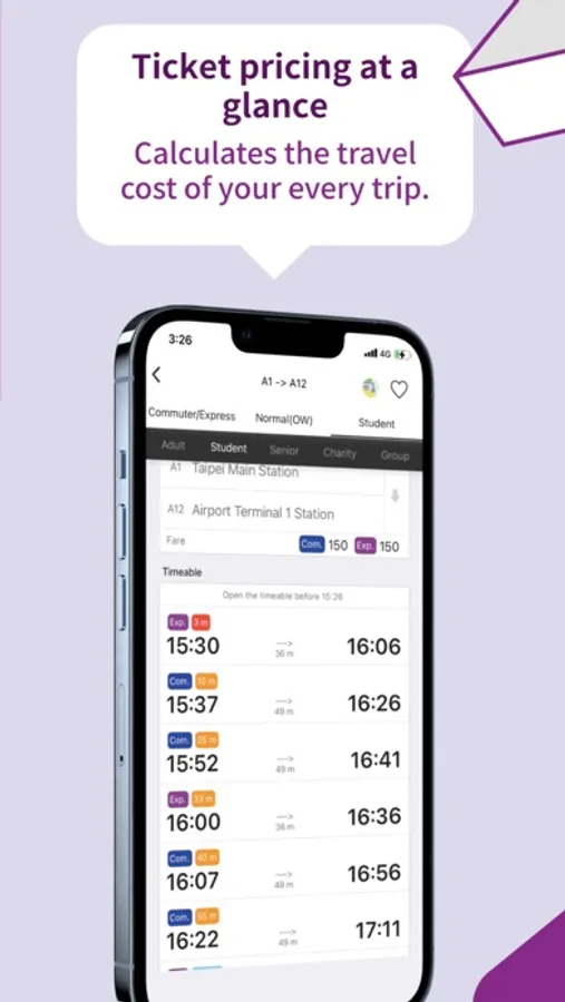 Check ticket prices, timetable, arrival time. Even prices for different tickets. All information are within a tap's reach