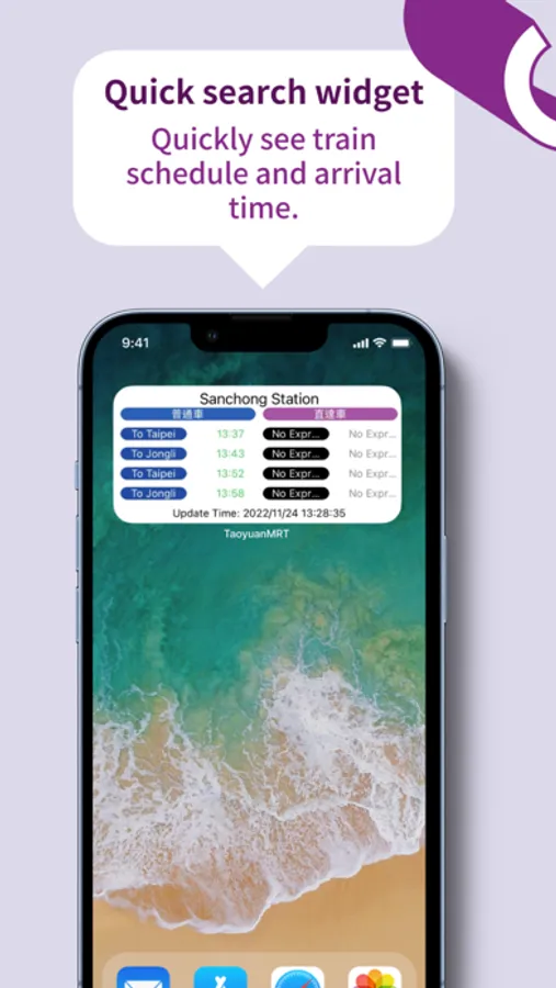 Configure quick lookup stations and quickly see timetable in the widget page. Stop missing trains.
