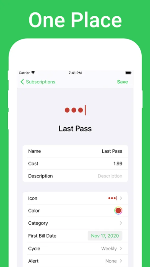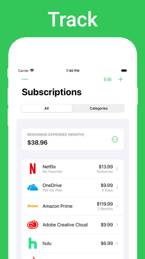 The Subscription Manager app is a convenient way to track your subscriptions and expenses. Totals are calculated for you, so you'll always know what you owe and when you owe it. You can even get reminders when bills are due!