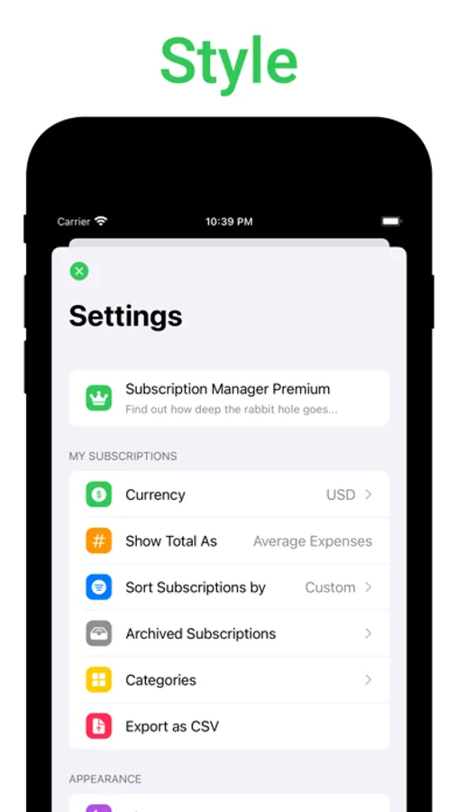 Sort subscriptions in a number of ways, pick from tons of currencies in the app, create custom categories to group subscriptions, change the theme or icon of the app, and more.