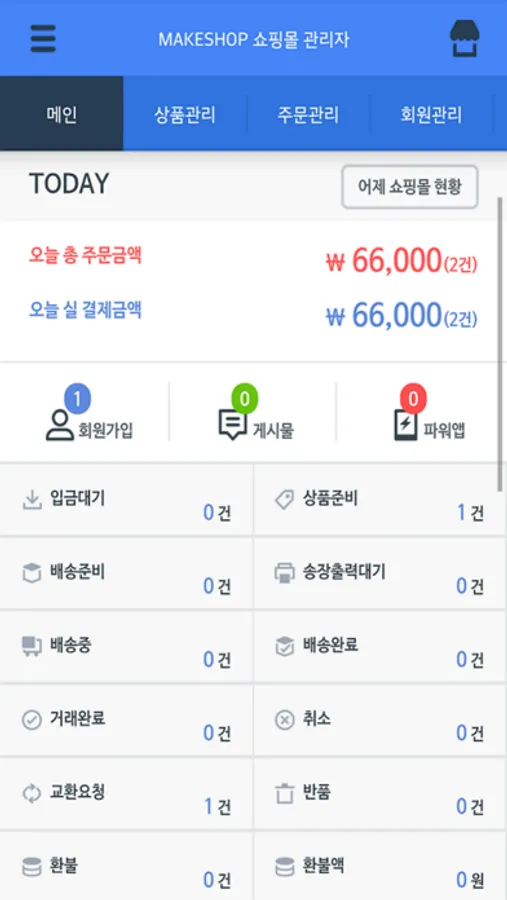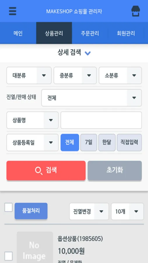 메이크샵 관리자 pc에서 이용하던 기능을 모바일로 사용가능합니다.