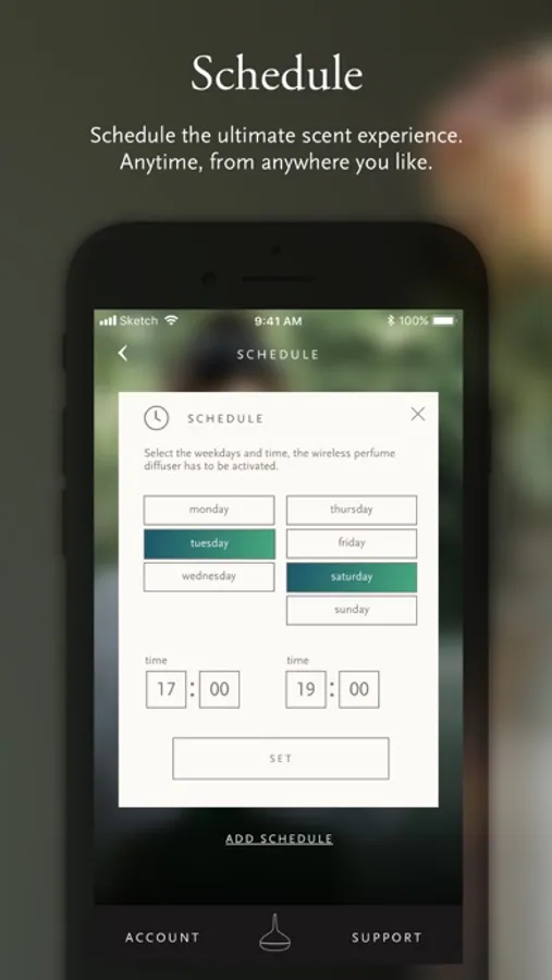 With the Rituals Wireless Perfume Diffuser, you can create the best perfume experience in your house by using various settings in the app. By choosing set times and days, you can always enjoy the lovely Rituals scent when you are at home. Also by determining the perfume strength and size of the room you can experience the perfect perfume intensity. The device can also be controlled without the app, by using the on/off button on the device.