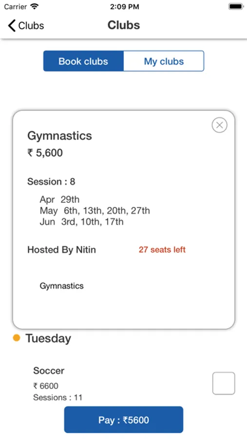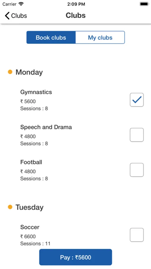 2. Clubs: Enroll for clubs and pay easily.