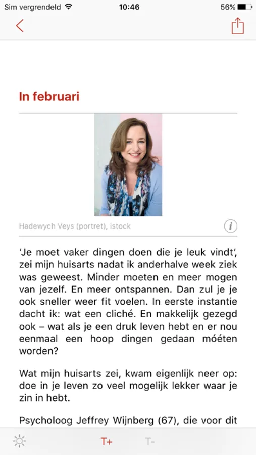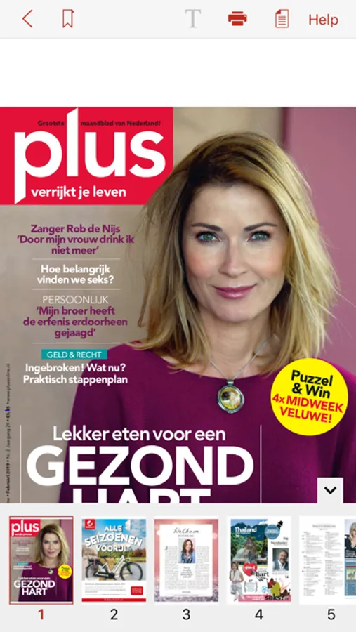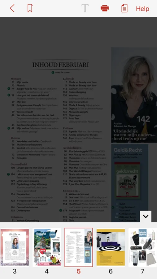 • u bladert door de pagina’s waarbij u kunt inzoomen op artikelen, foto’s en grafieken.