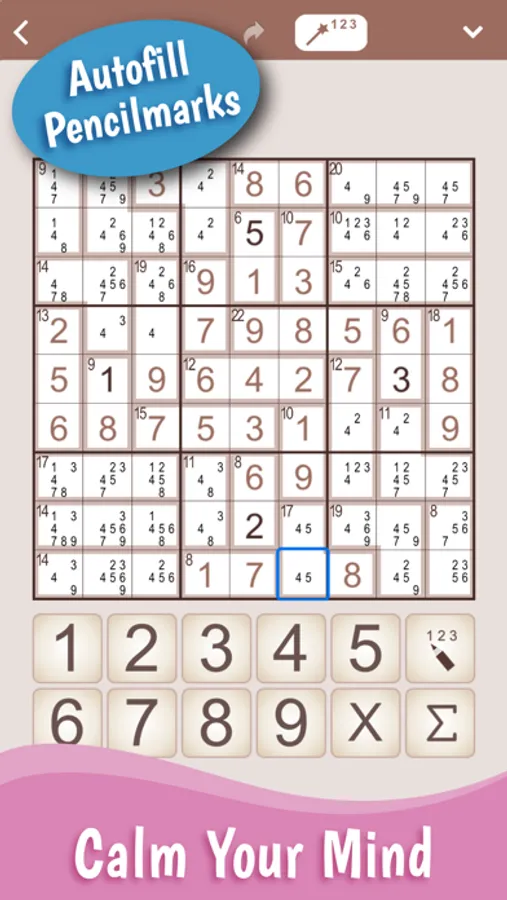 Play a crossover variation of Sudoku and Kakuro! SumSudoku, also known as Killer Sudoku, are addictive logic puzzles best described as a cross between Sudoku and Kakuro. Using pure logic and simple add/subtract calculations, these fascinating puzzles offer endless fun and intellectual entertainment to puzzle fans of all skills and ages.