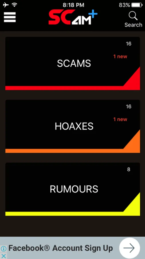 - Non-restricted access to ALL scams, hoaxes and rumours posted and categorized on the platform.