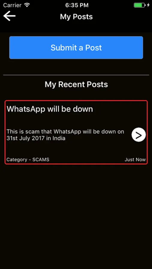 The App allows any registered users to create listings of global or country specific scams, hoaxes and rumours. These listings are immediately available in the app to other users. Users will receive daily reminders to view new listings that match location preference. Registered users will also be able to receive notifications about specific messages on our hot-list as and when we learn about them.