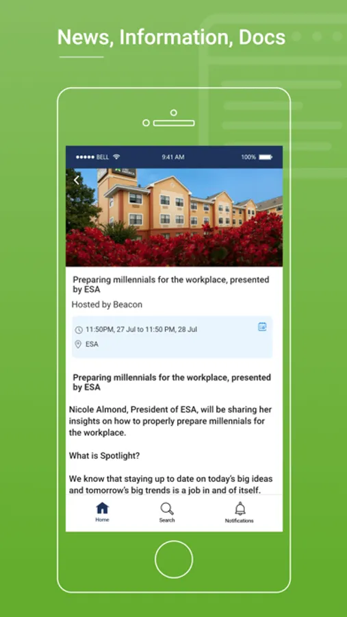 MyESA App is a free mobile communication and messaging app available for active, designated Extended Stay America associates who choose to register and use it. MyESA App helps the Company to facilitate and encourage two-way communications and deliver content to users.