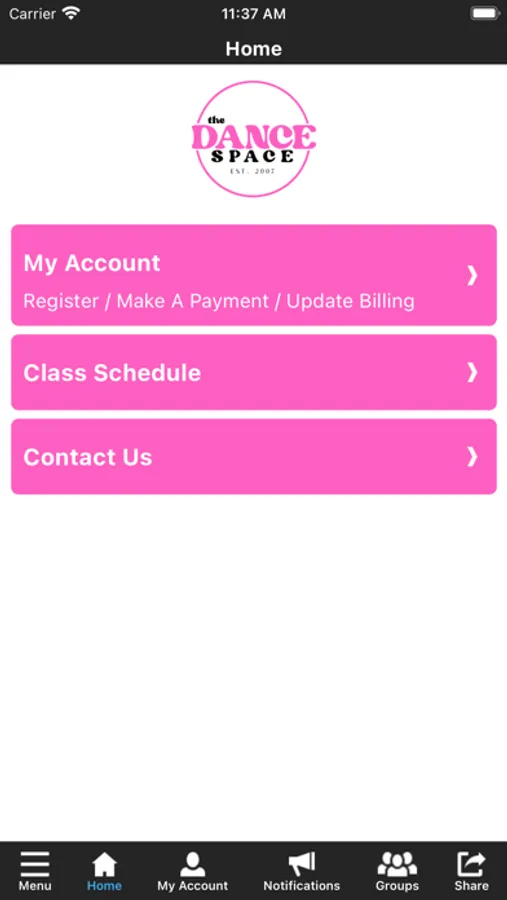 The Dance Space app allows you to register for classes, and special events at our Highland Village location. The Dance Space calendar, team stat tracker, social media links, and contact information are also easily accessible from the app.