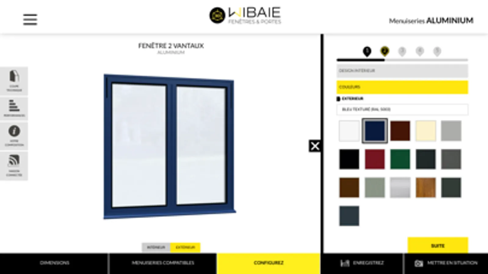 Matériau, dimension, type d’ouverture, design, couleur, poignée, vitrage, petit-bois, volet roulant… cette application vous permet de configurer et visualiser en 3D vos menuiseries.