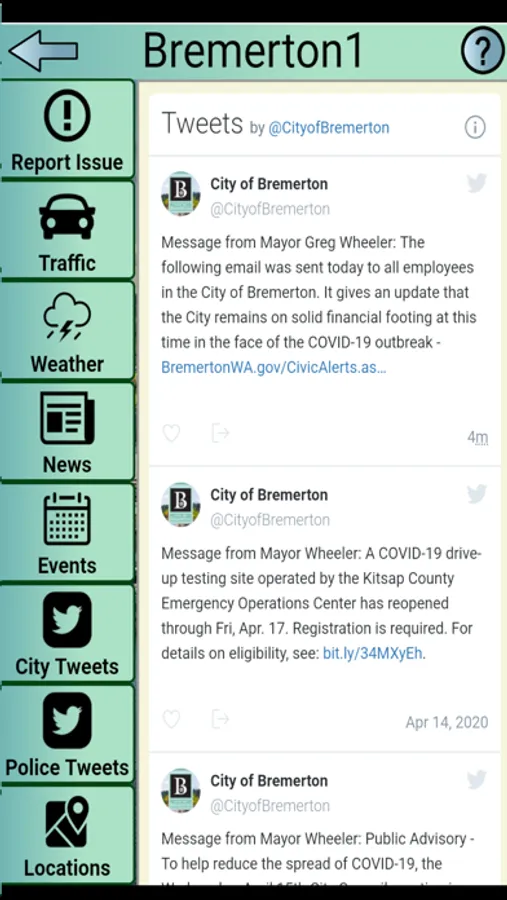 Get the latest updates from the Mayors office via Twitter and news feeds. Stay current on Police news. Find the location of Bremertons buildings and parks. Get the latest traffic and weather updates.