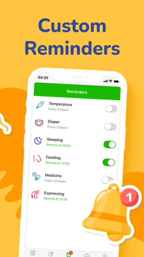 Being a FTM (first-time-mom), or mom in general, is very tiring and challenging! You’ve just made it home from the hospital, exhausted and overwhelmed by your new responsibilities, and need a little help. Don’t worry! In the first few months of your baby's life, it really revolves around eating, sleeping, diaper changes and occasional little doctor's visits. As a new mom, it’s not always easy to remember the last time you fed your baby or changed their diaper. We don’t blame you for falling asleep on the couch occasionally, so we’ve got you covered with handy alarms and reminders. Alarms and graphs are a great way to have an at-a-glance look at what you need to do without stressing over "what if I forget?”.