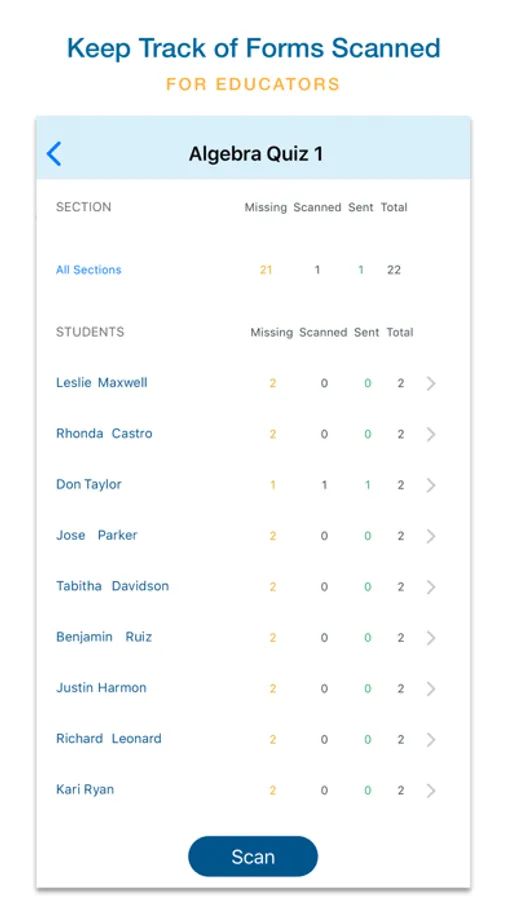 SmartScan allows you to scan Mastery Manager answer forms on the fly by using your device's camera. Students can easily scan their assessment and get instant results. Teachers can scan multiple answer forms for any assessment while the app keeps track of forms scanned. Easily see what Mastery Manager forms have been scored and what forms are still missing. All results will be immediately sent to Mastery Manager for advanced reporting. The SmartScan App requires a subscription to Mastery Manager and the SmartScan Module to be turned on.