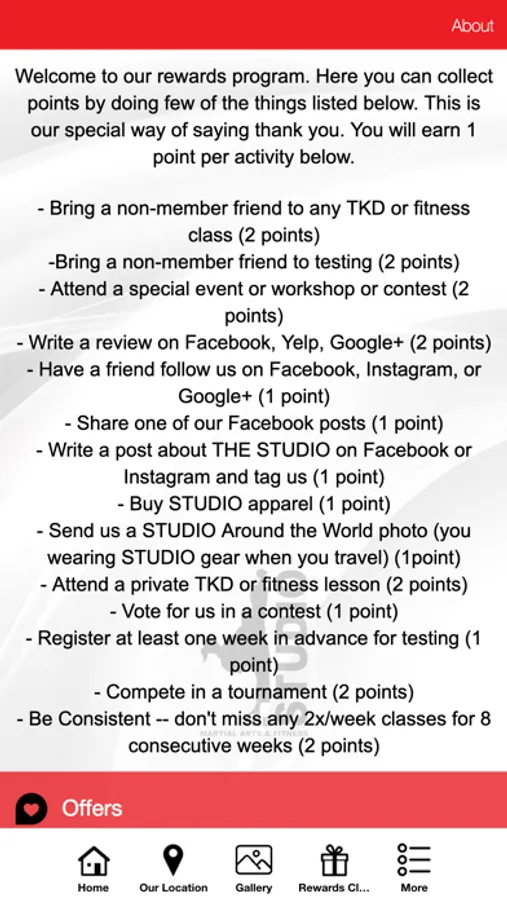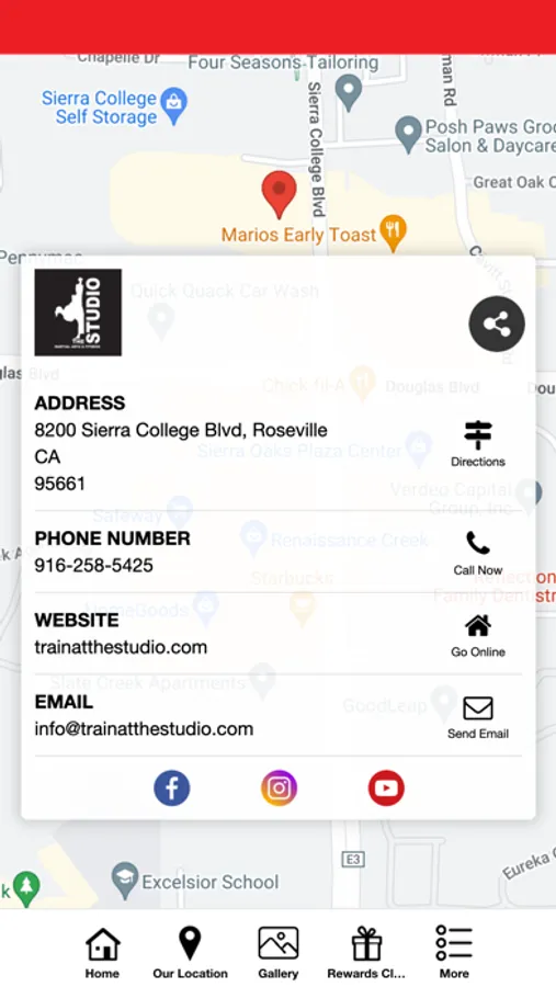 Welcome to the official app for THE STUDIO Martial Arts & Fitness, located in Roseville and serving Granite Bay, Rocklin, Loomis, Orangevale, Folsom, and Sacramento. Our motto is "strong bodies and clear minds," and our goal is to help change lives for the better, both physically and mentally, through martial arts and fitness. We offer a positive, safe, healthy, and non-intimidating environment filled with camaraderie, with classes available for women, men, and children of all ages and fitness abilities. THE STUDIO is operated by 7th Degree Taekwondo Master Amitis Pourarian, a Kukkiwon-certified instructor with more than 20 years of teaching experience. All of our instructors thrive on watching students challenge themselves, empower themselves, and do things they never thought possible!
