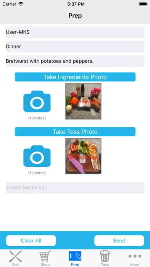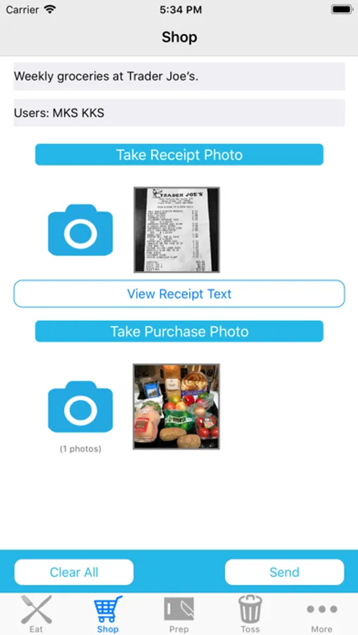 PREP: Preparing meals for your and your household, including tracking the scraps of food that you do not use. In the PREP area, you can take photos of the foods you prepare, food waste from the prep, and share details about them. If you are eating at a restaurant, or similar establishment, you can take a picture of the receipt and that receipt will be translated into text using the OCR engine.