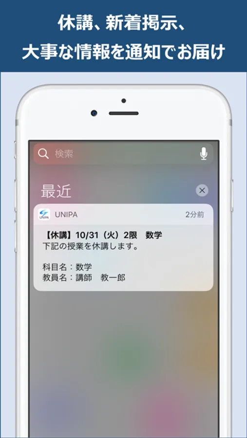 IC出欠端末と連動し、授業開始前にプッシュ通知。大事な授業への遅刻を防げる。