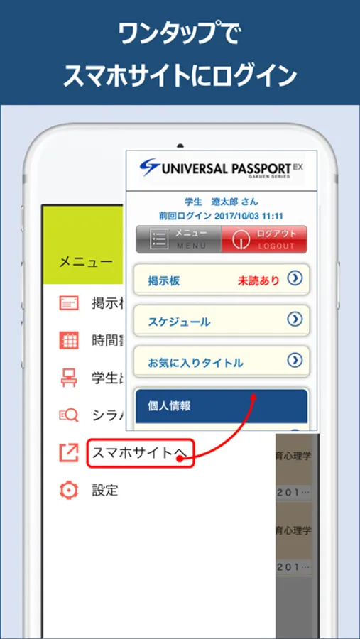 授業をタップするとシラバスが公開されている場合は、シラバス照会画面を起動することができます。