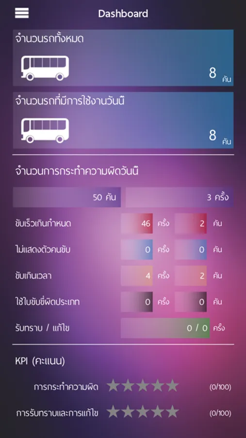 Application นี้เป็น Application สำหรับให้ผู้ประกอบการ และพนักงานขับรถของผู้ประกอบการขนส่งใช้งาน เพื่อให้สามารถรับทราบการแจ้งเตือนกระทำความผิดในการขับขี่ยานพาหนะของพนักงานและตัวบุคคลผู้ขับขี่เอง ได้อย่างทันท่วงที เพื่อให้สามารถเปลี่ยนแปลงพฤติกรรมการขับขี่ที่อาจก่อให้เกิดอุบัติเหตุและสร้างความเสียหายได้ พร้อมทั้งสามารถรับทราบข้อมูลข่าวสารต่างๆ ที่ทางกรมการขนส่งทางบก ต้องการประกาศและแจ้งให้ผู้ประกอบการรับทราบได้