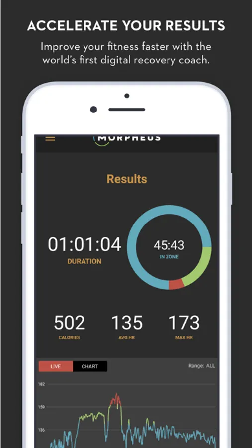 Each day, using its proprietary algorithms, Morpheus will give you a recovery score to help you manage your training and your lifestyle to optimize for the fastest results possible. Together with its personalized heart rate zones and targets, Morpheus will make sure your body gets the training and the recovery it needs to perform its best.