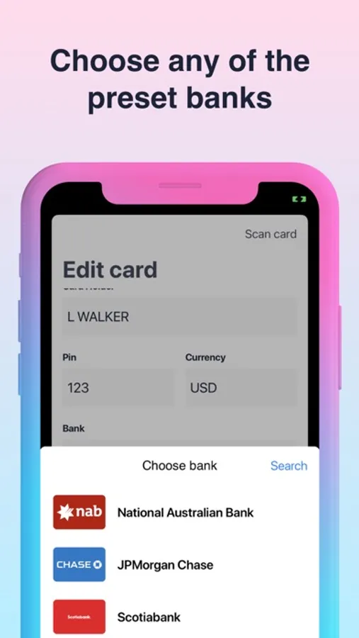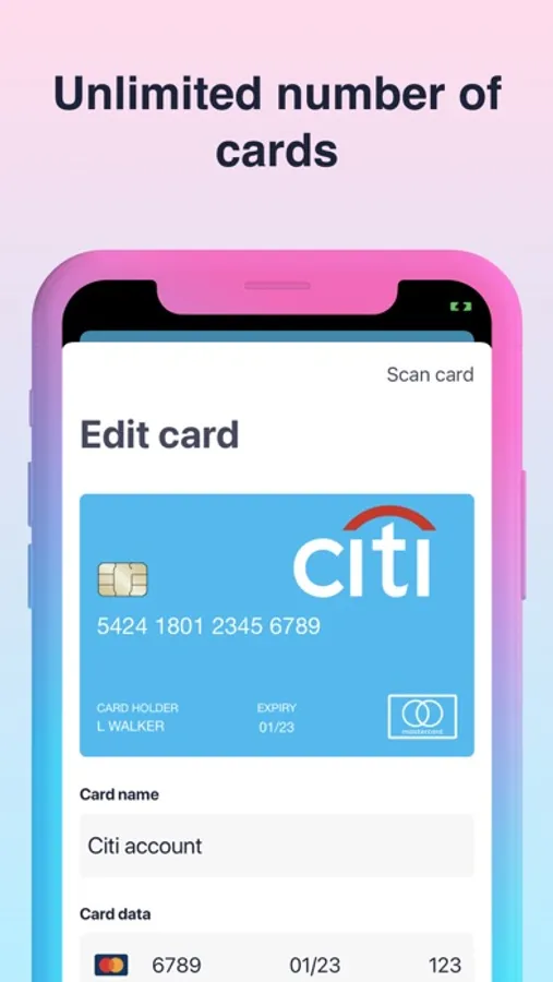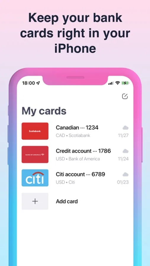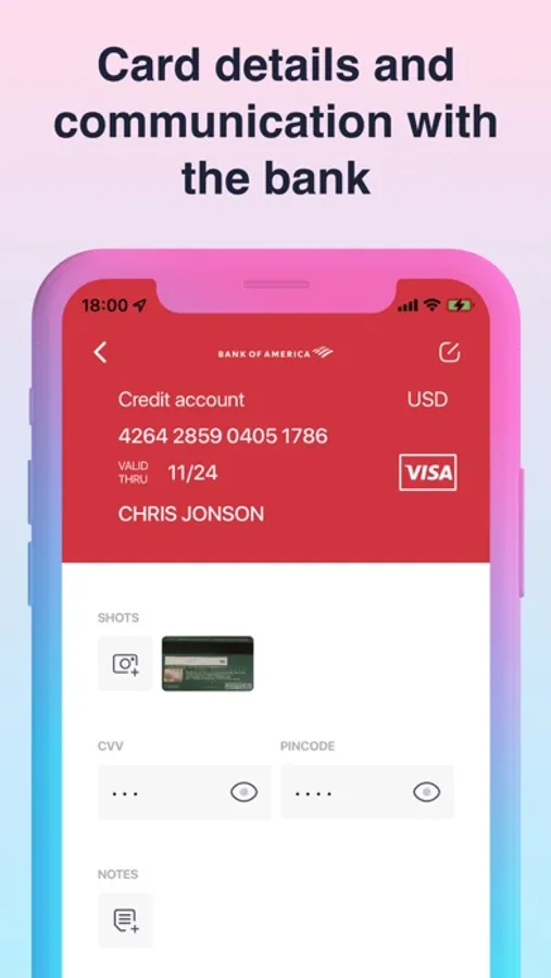 Our application allows you to store information about your bank cards. All data is stored encrypted and the developers have no access to it.