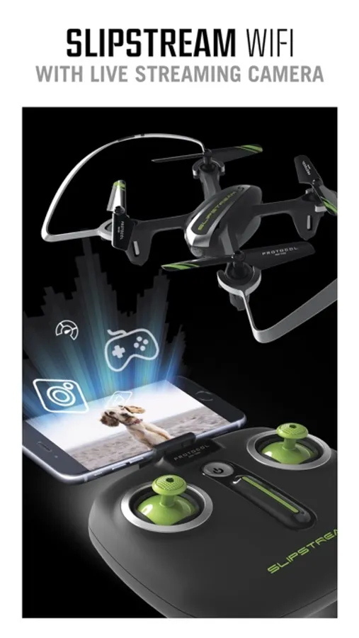 App connects smartphones and tablets to Protocol’s Slipstream Wifi Drone via drone’s built-in Wi-Fi signal.