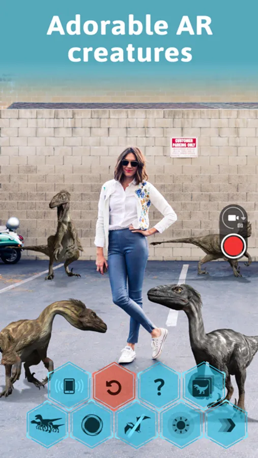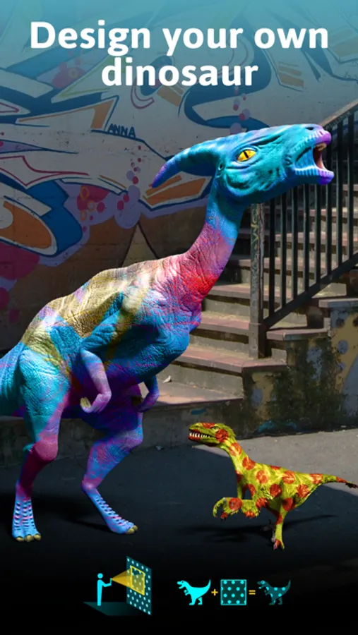 Design your own dinosaur by changing its skin. Experiment with your monster, choose any skin pattern or paint your own. To change the skin of your dino, find the desired texture, point the device’s camera on it and tap ‘scan’. Create a collection of unique monsters!