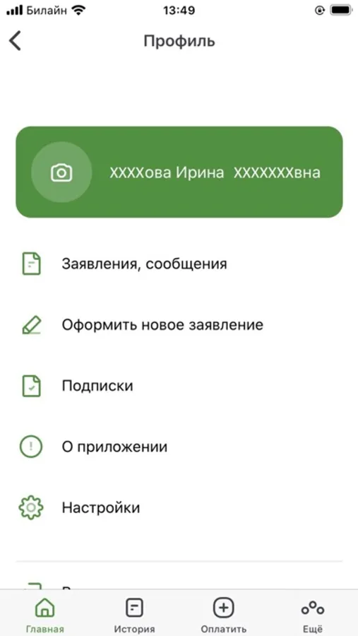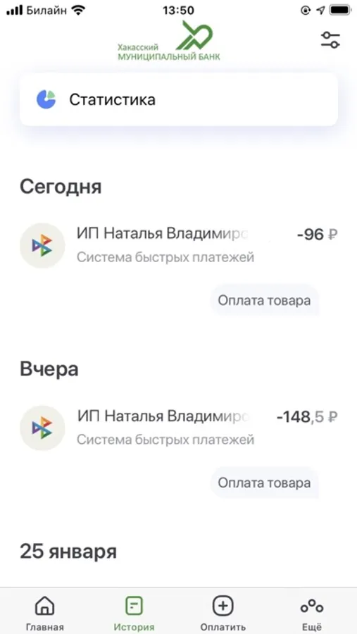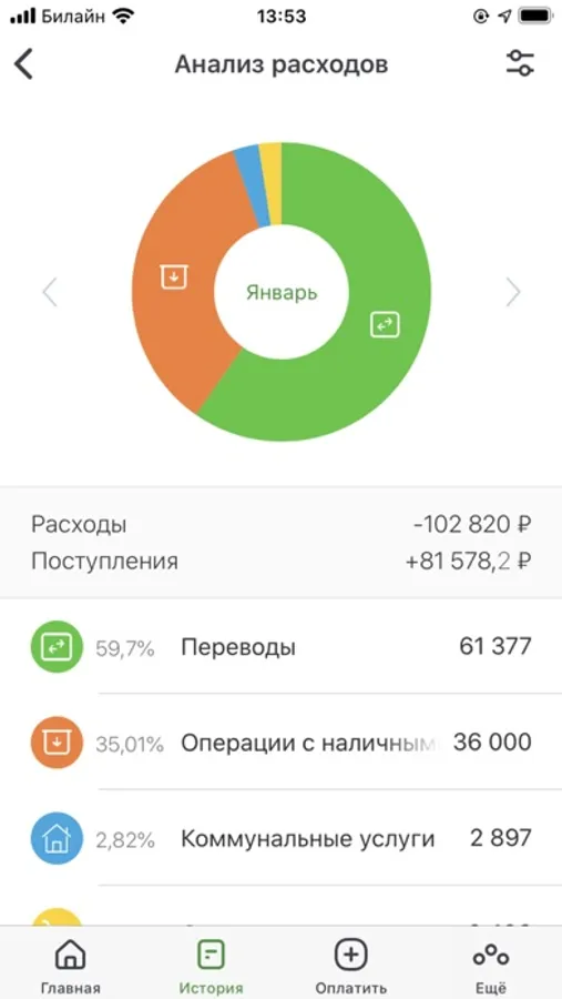 - просмотр истории операций и анализ произведенных расходов за определённый период