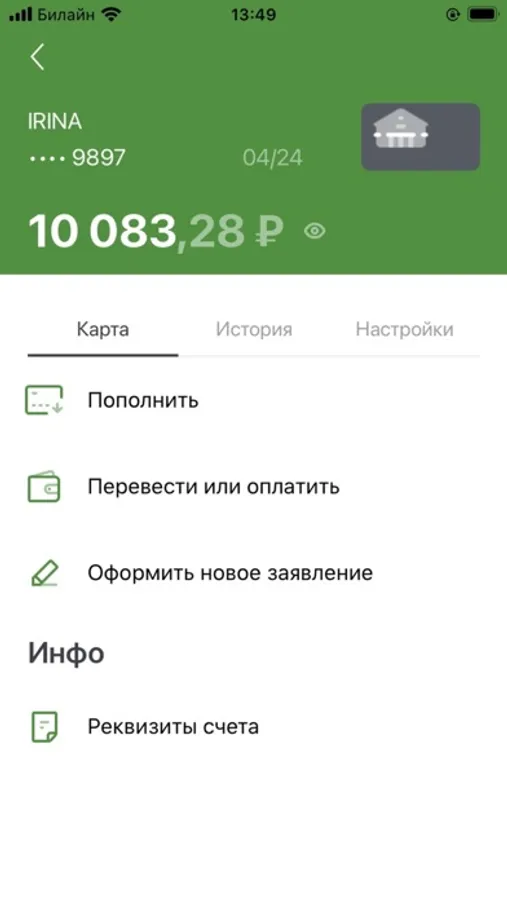 - просмотр информации по своим банковским счетам, картам и кредитам