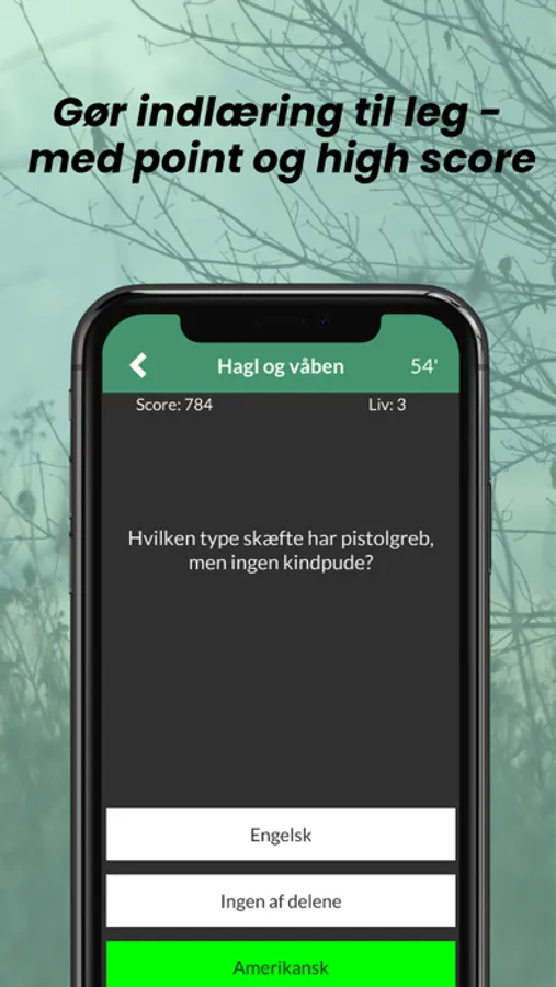 With more than 1.000 hunting related questions and 3.000 answers, there should be enough learning material for a while. Be aware that the game is in Danish with only Danish questions, specifically for Danish hunters.