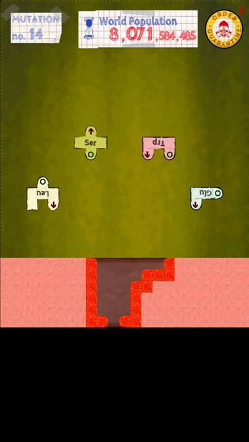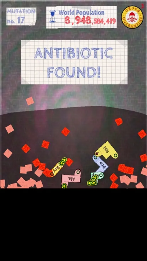 If you see your scientific endeavours failing and time is running out, but you just can't find the right peptide, you can stop developing your drug and send people into quarantine by pressing the quarantine button. This will save your remaining population, but the downside is they will hardly recover between epidemics. Keep in mind, though, that you can only use this button three times!