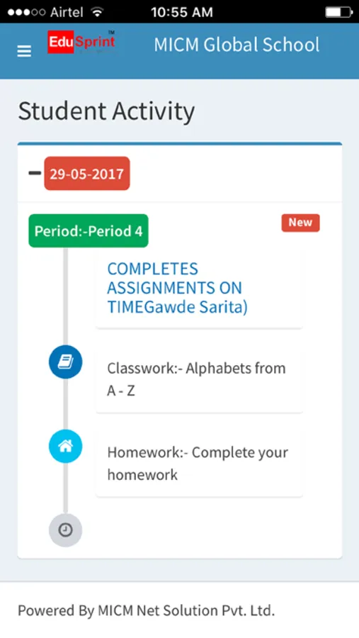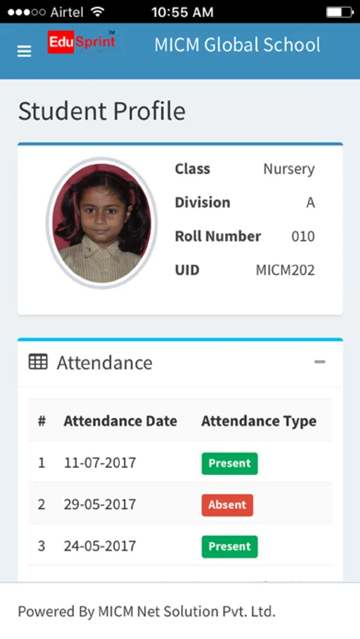 Note : Pleas ask your School to register with MICM Net Solution PVT LTD to get benefits of Edusprint+ App (App Credentials will provided by school authorities only)