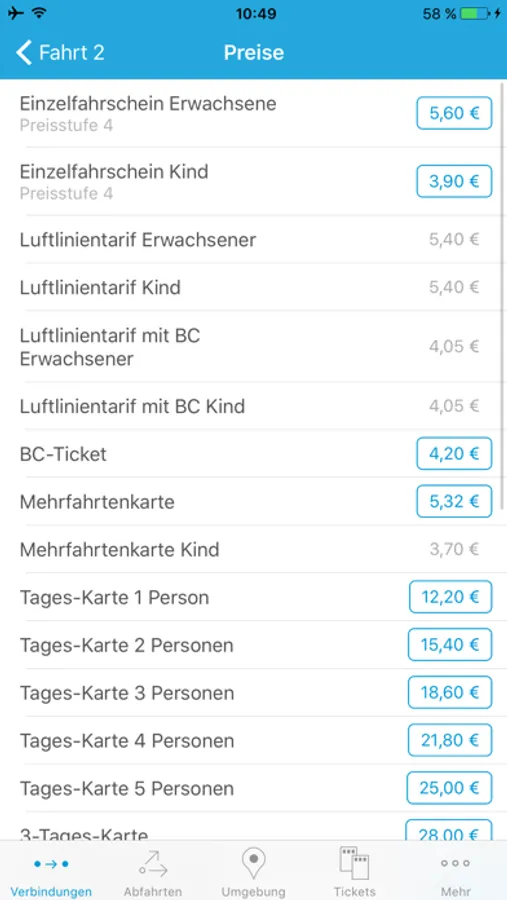 - Starten Sie die App, wählen Sie Ihre gewünschte Verbindung und das gewünschte Ticket aus und schließen den Kauf ab.