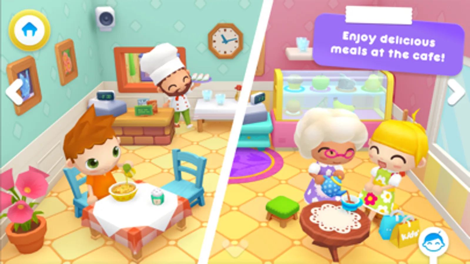 Discover 16 spaces with 7 shops and outdoor areas, and 13 characters of different ages and occupations. Try on new clothes for the whole family in the clothing stores, weigh the different fruits and vegetables in the supermarket before buying them, change your hairstyle at the beauty salon, and rest after a long day of shopping with a cup of tea on the café terrace.