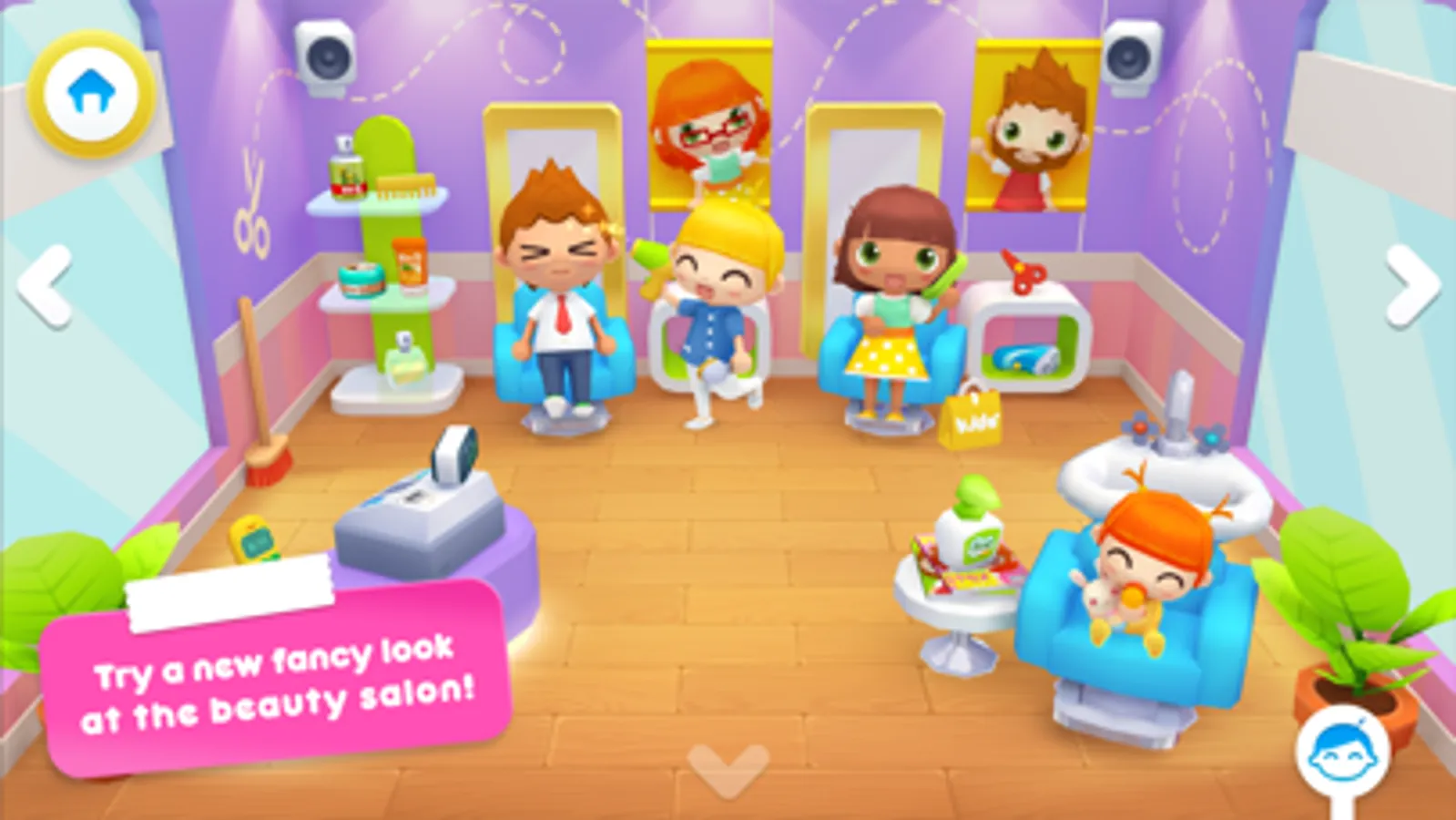 Discover 16 spaces with 7 shops and outdoor areas, and 13 characters of different ages and occupations. Try on new clothes for the whole family in the clothing stores, weigh the different fruits and vegetables in the supermarket before buying them, change your hairstyle at the beauty salon, and rest after a long day of shopping with a cup of tea on the café terrace.