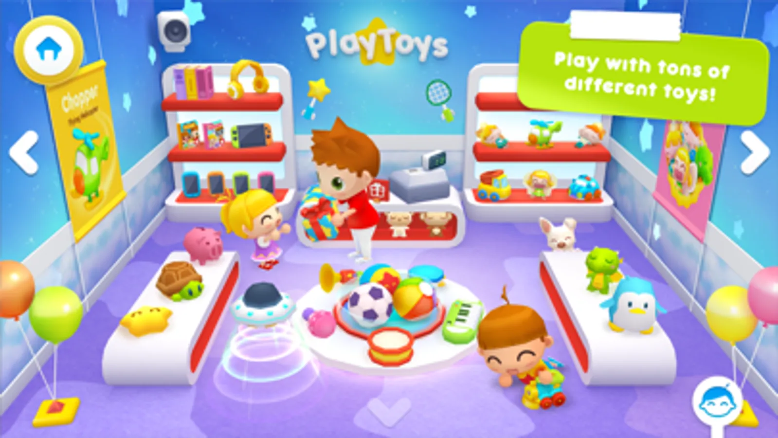 Experience day-to-day life in an inviting shopping center. Each shop is different and offers various objects to play and experiment with. You can discover dozens of hidden surprises! In addition, as with all PlayToddlers games, you will be playing in a safe environment, appropriate for all ages, without violence, cruelty to animals, or third-party ads.