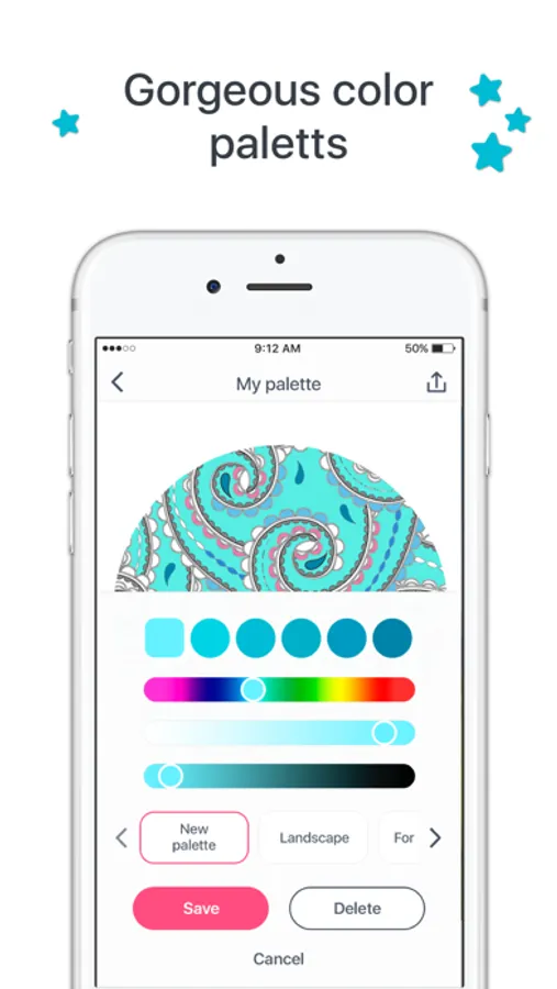 - More than 25 color palettes with over 16 colors each: select the appropriate palette and fill your picture with beautiful colors, from muted to vivid ones.