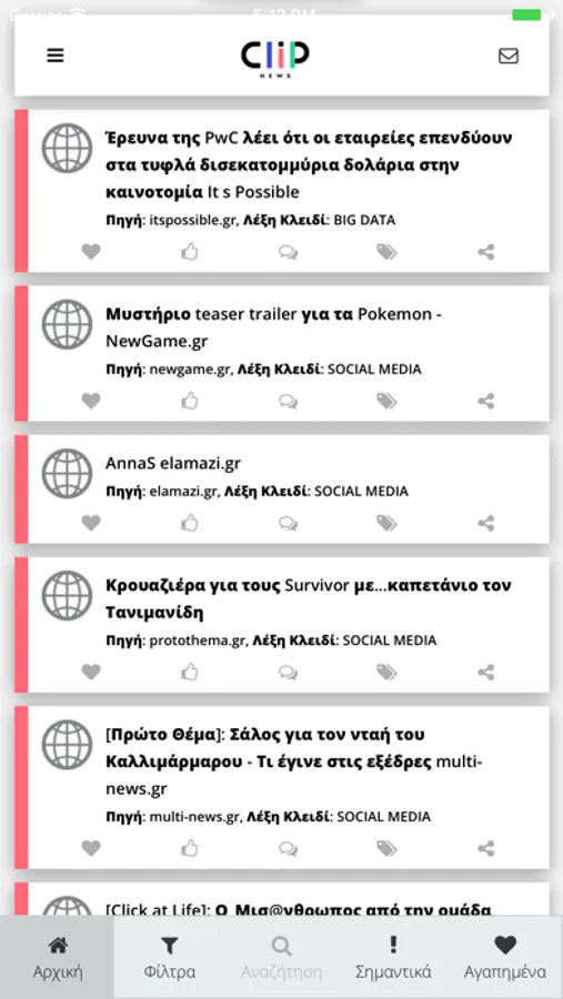 Πλέον μπορείτε να χρησιμοποιείτε την mobile εφαρμογή της Clip News προκειμένου να έχετε πρόσβαση στην αποδελτίωσή σας και τα αποκόμματά σας. Μέσα από την εφαρμογή μπορείτε να κάνετε πολλές από τις λειτουργίες που είναι διαθέσιμες και στο portal της εταιρίας. Ενδεικτικά, τέτοιες λειτουργίες είναι: