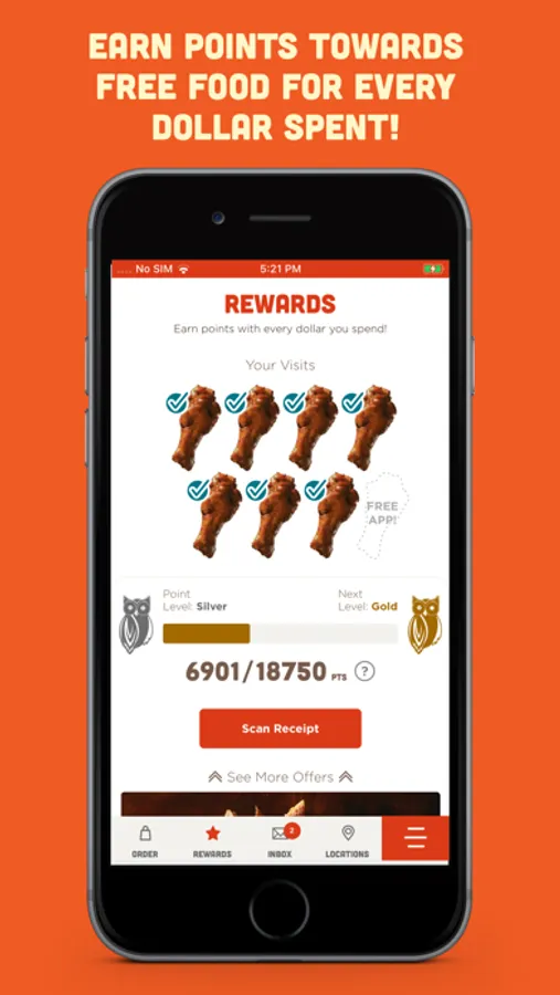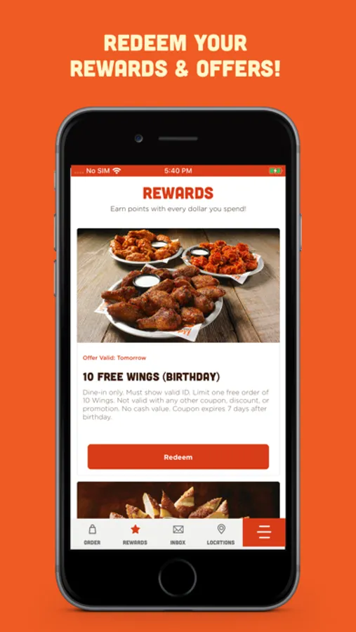 Your first reward is waiting for you in the app now, and it’s a classic. Get a free appetizer on us when you register today and then earn more free food after every 8th qualifying dine-in visit or online order of $12 or more. You’ll also be treated to other discounts and special offers, like 10 free wings on your birthday every year!