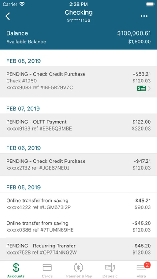 • Detailed transactions list — View the date, location, amount, and more for transactions on one page, just like you see in Online Banking