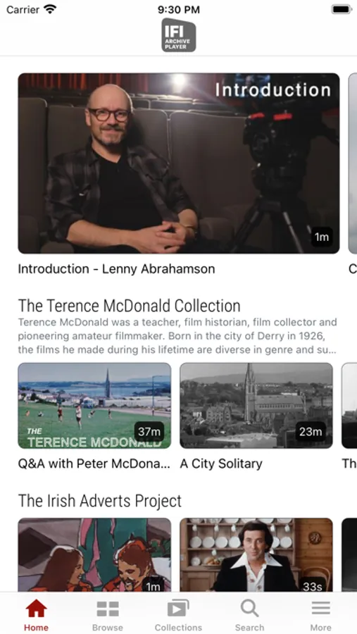 The IFI Player app is a virtual viewing room of treasures from the Irish Film Institute’s (IFI) remarkable moving image collection in our Archives in Dublin, Ireland. This free app will give audiences across the globe instant and exclusive access to this rich heritage. The material on the IFI Player has been carefully selected to give audiences a taste of the breadth and depth of the collections preserved by the IFI Archive.