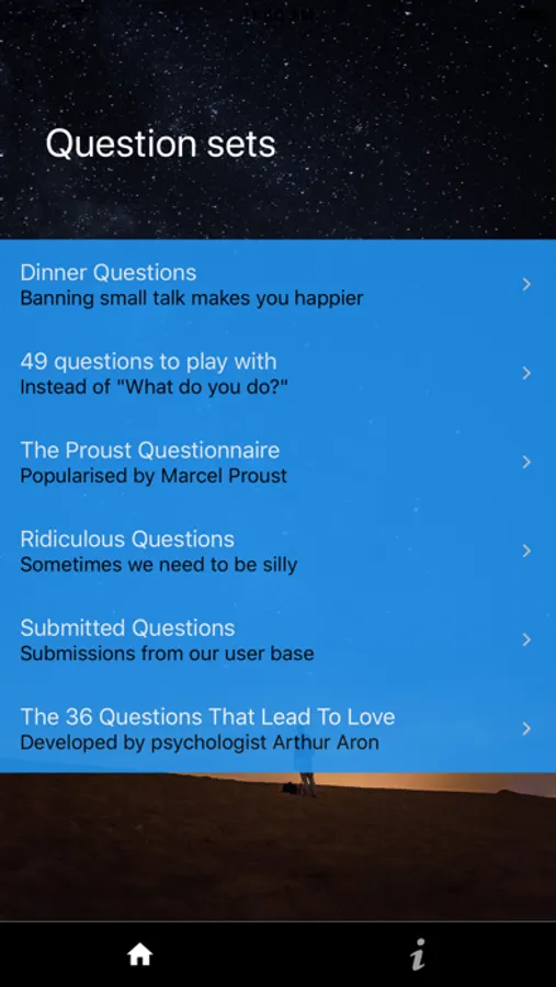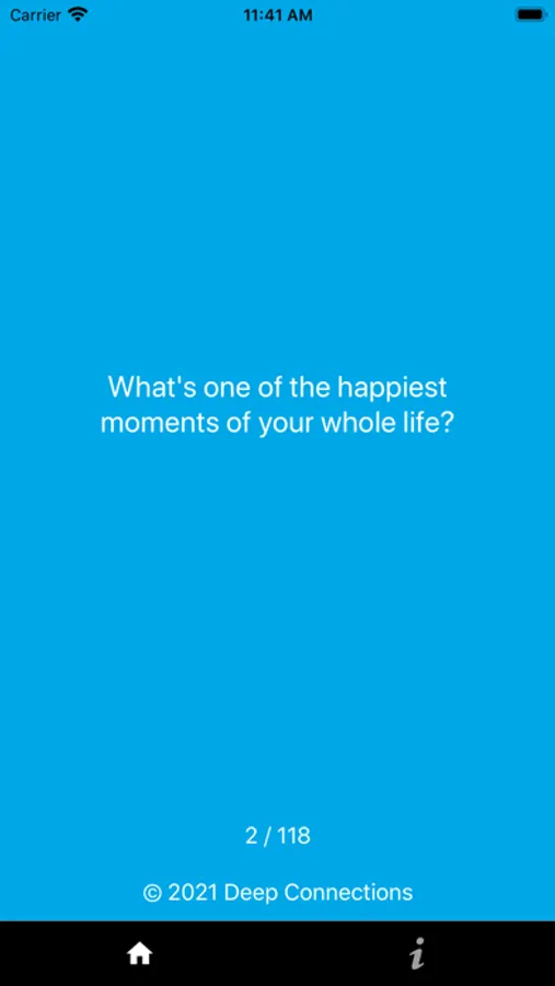 I've always enjoyed asking people deep and meaningful questions about their lives. This app has a curated list of questions that is designed to deepen the connection with the person you're playing this game with.