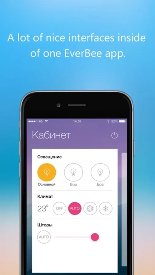 EverBee app allow to run interface inside of it, which is specially designed to control your smart home. Few interfaces may be loaded at the same time. Switch between them fast and simple.