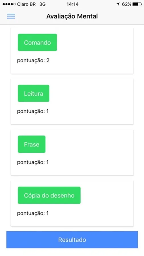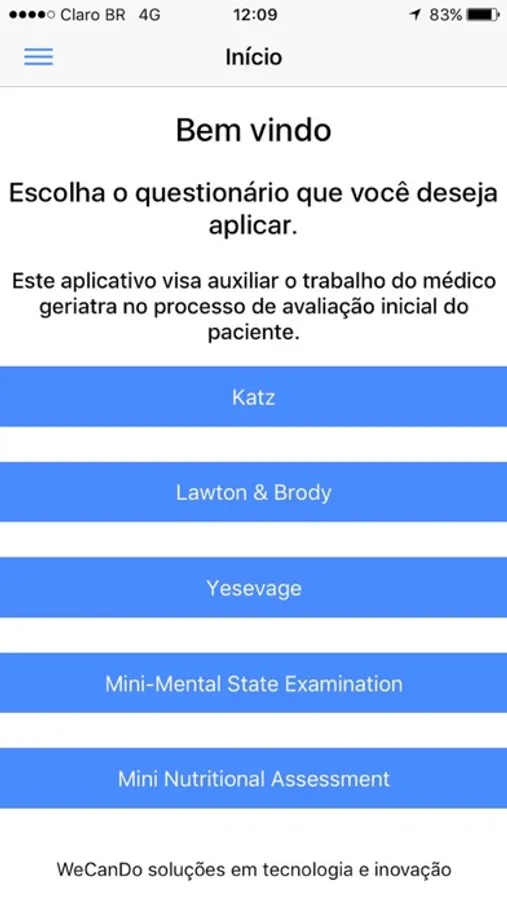 O aplicativo possui questionários que facilitam a obtenção de um resultado utilizando as escalas de Katz, Lawton & Brody, Yesevage, Mini-mental state e mini bnutritional Assessment.