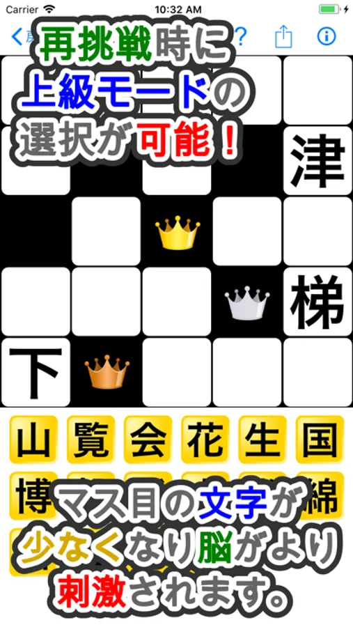 マス目上の文字が少なくなり、より刺激的な挑戦となっています。